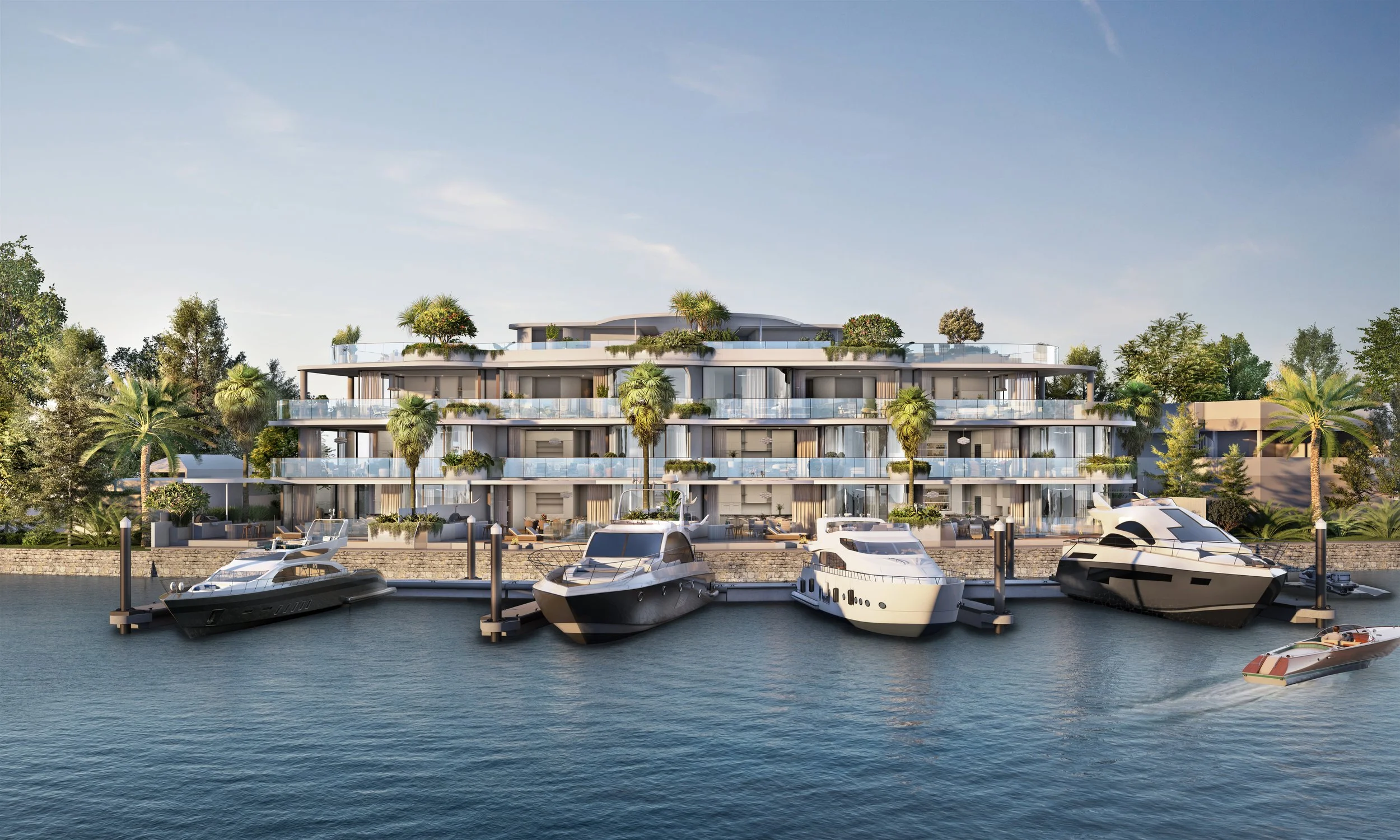 “Helm blends mediterranean minimalism with the sleek curves of superyacht sophistication. The residences boast expansive river views with every detail curated for discerning residents.”